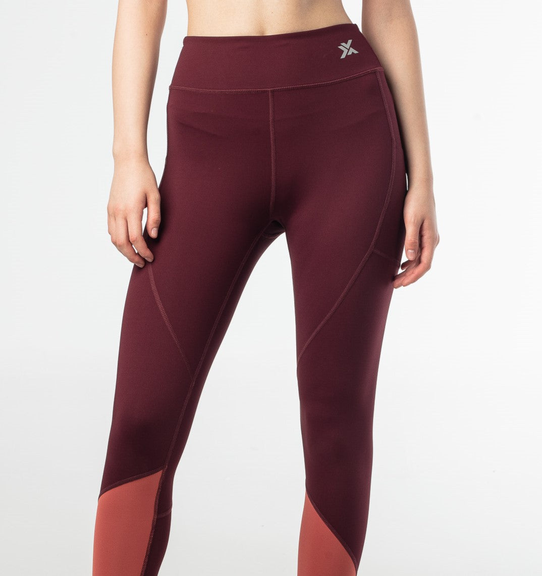 Blaze Two-Tone Leggings - Dark Wine and Blush