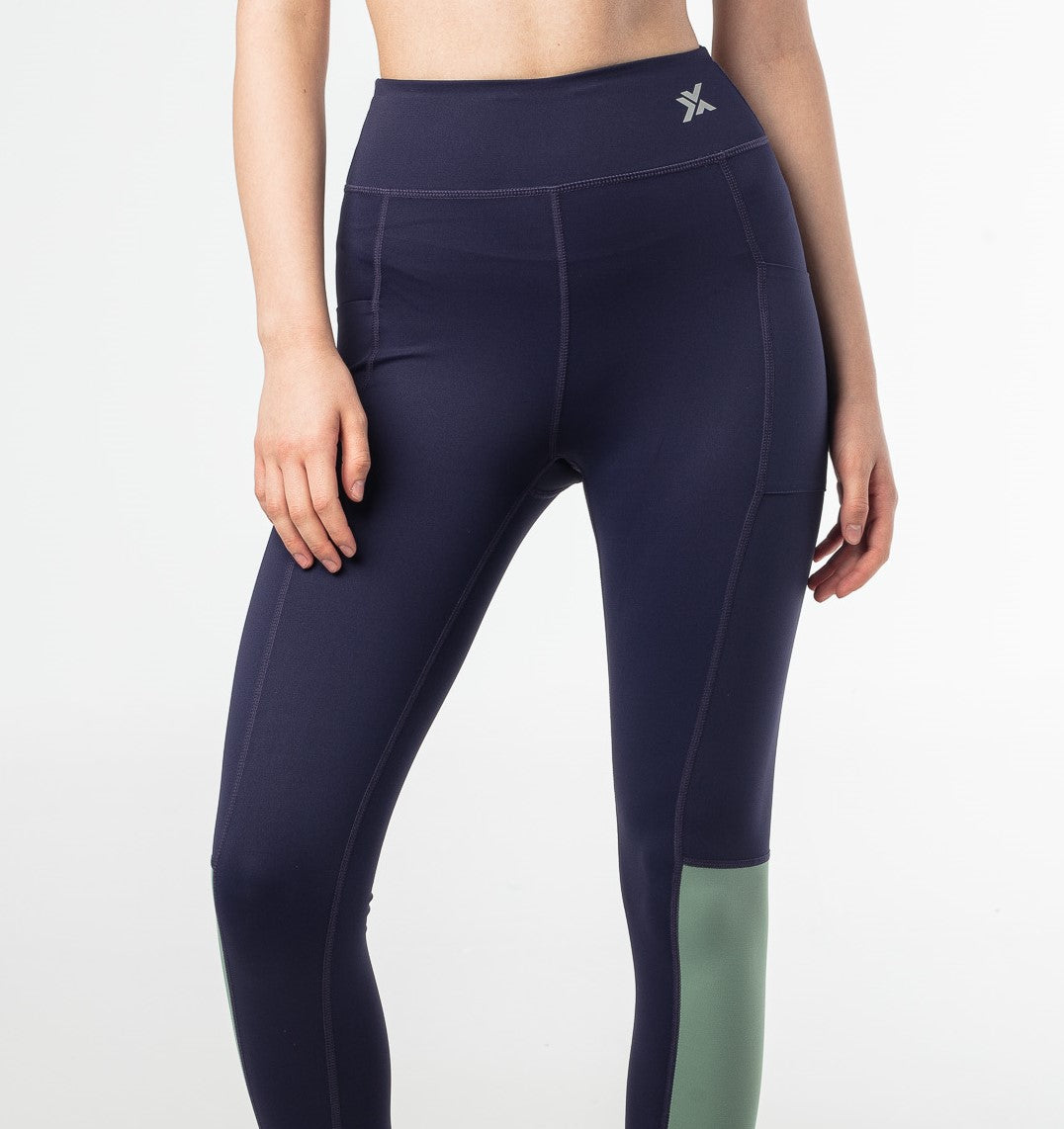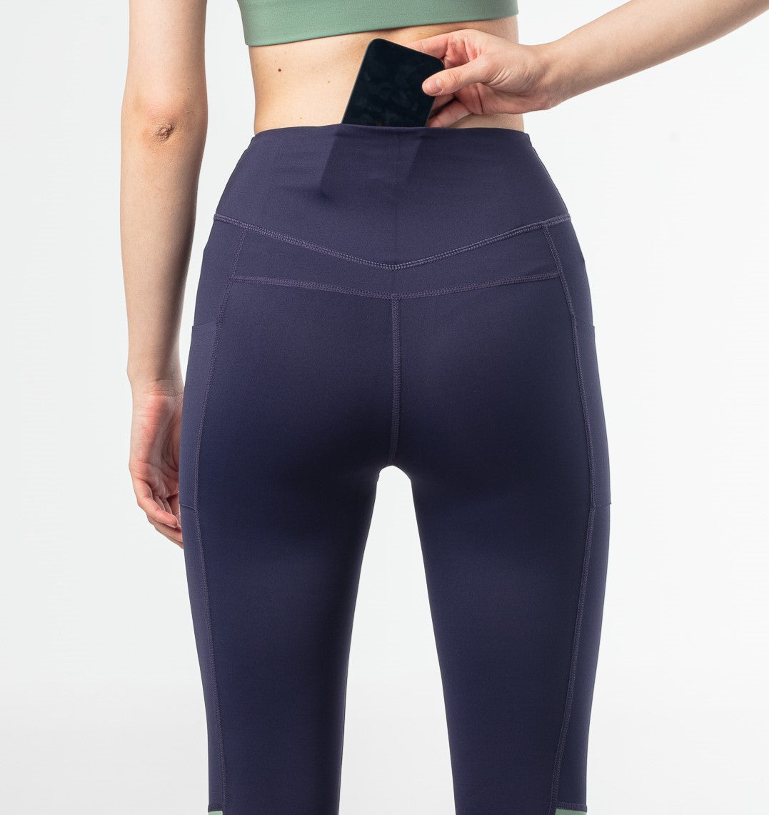 Elevate Two-Tone Leggings - Dark Navy and Varsity Green