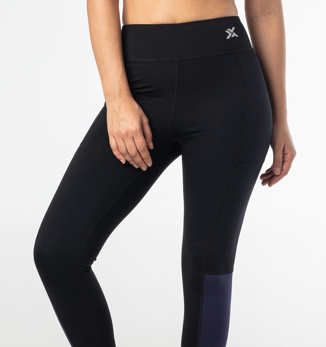 Elevate Two-Tone Leggings - Black and Dark Navy